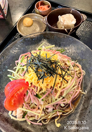 Read more2025.9.10 仕事仲間と昼に訪店。近くは裾野店を時折訪ねるがこちらはきょうが初見参w。わたしは五目冷やしそば(並盛)を所望。程なく品が届きおもむろに喫食。 …umm.旨い。腰強き麺と標準的な具材が程よくmatchした充分及第点レベルのひと皿♬。side...