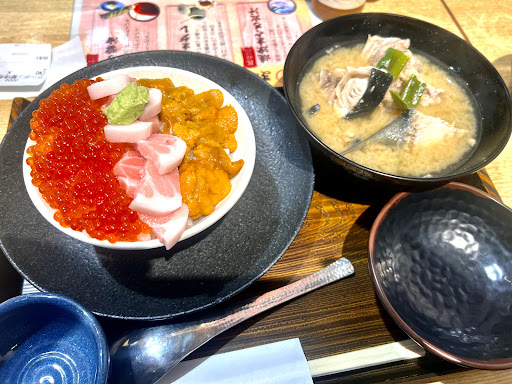 Read more色んな人がいると思いますが☆1はクレーマーかと思う程まぐろを食べるにはコスパよし、味よしでした。赤身や白身とはっきりしたのは苦手な方なので海鮮丼のようなのを頼みました。まず赤身を店のゴマだれで半分食べましたらおいしくて臭くなくこれなら醤油でもおいしいだろうと後の半分を醤油で食べましたらトロのような口当たりでした。冷凍をしていないのでべちゃべちゃしてないそうです。白身もまたトロのようで(何の身?)臭くなくおいしかったです。むしろ大好きな海老が固くて残念でした。うにもおいしいのではなかったです。サーモンはスモークでないのでおいしいサーモンではあるでしょうがうにも付いてしまって残念でした。海の仲間たちはその他魚卵ものっていたり小さめ丼ですがご飯はたっぷり入ってました。ご飯は酢飯好きですが普通の白飯でも最後に残して出汁をかけていただくのにはいいかなと思います。出汁は白濁したスープで鰹の風味が出ている塩味が少なめで味を調整できます。セルフの水やお茶のお茶は静岡と書いてありますが出がらしで良さが出ていなくて開店時で同じか挑戦したいです。入口?に道場とのネーミングからか道着とプラのそこそこ大きいマグロと子マグロがあって写真撮れるようになってます。 平日行くと値段が違うとの事ですがこちらもチャレンジしたいと思います。店員さんは忙しいでしょうが極端に悪いとは思わず、むしろ親切に対応してくれました。...