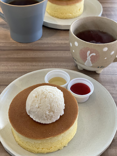 まず、他のどのパンケーキ屋さんと比較しても小さい。食感は、しっかりめのホットケーキかな?トッピングの苺も写真より小ぶりで甘酸っぱい普通の苺という印象。パンケーキが小さいから苺が写真で大きく見えたのかしら?半分の面積に丁寧に乗せられていましたが量は物足りませんでした。もう反面にトッピングされたクリームも、パンケーキの容積に対して少なく、最後はパンケーキのみで食べるはめに。まずくはないです。