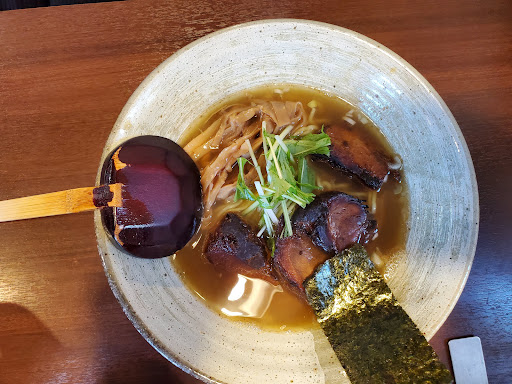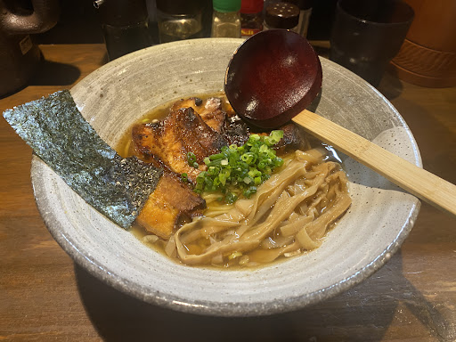 着いた時には4名の待ちがありましたがさほど待たずに入店できました。ウェイティングリストに名前を記入して待つ方式です。 カウンターに案内されラーメン大盛り味玉トッピング&高菜ご飯をオーダー。ラーメンは醤油と塩から選べますが醤油を選択。 そんなに待たずにすぐ着丼。丼から立ち上がる魚介系の香ばしい香り♪ 麺をすすると香り以上にガツンと香ばしい魚介出汁の風味が口内に炸裂。硬めに茹でられたコシのある麺を噛むごとに香りが広がります。 具は青ネギ、海苔、チャーシュー、穂先メンマ。チャーシューはバラ肉を柔らかく煮込んだものを炙ってあります。甘めの味付けの肉がとろけて脂の甘みが十分感じられます。 穂先メンマはひたすら柔らかく麺と一緒に食べるとバッチリ。なんとなくゆずの香りが漂う感じでスープの味付け自体は薄めであっさり。麺を楽しむタイプのラーメンでしょうか。 味玉を食べてびっくり。甘い味付けです。これは初体験。 高菜ご飯の高菜はごま油っぽい香ばしい香りが良いです。ややご飯の量が多かったので酢醤油とラー油で味を足して食べました。 ごちそうさまでした。次回は気になるチャー...