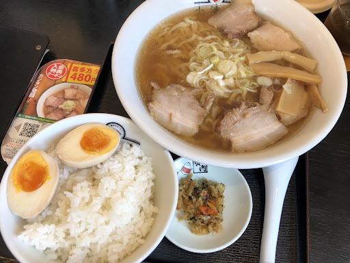 2020/8/1再訪 本当久しぶりに行ってきました。 今日はまちもなく、即着席出来た。幸先良い。 お約束のクーポン使ってライス、味玉、喜多方ラーメン大盛をオーダー。 味玉はオンザライスで頂きます。 本当にいつ食べてもホッとする優しい味です。 チャーシュートロトロ。ラーメンなのにデフォでチャーシュー5枚も乗ってるんですよね。 これがライスに合うのよ。 でもクーポンで頼んだライス調子に乗ったため完食出来ず。ごめんなさい。 会計時に8月いっぱい使える割引き券を頂いたのでまた近々お邪魔します。 ごちそうさまでした。
