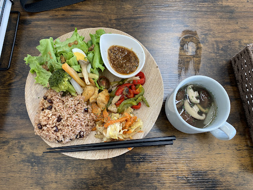 最高のスペースでした。 利用させて頂いたスペースは、「ドッグテラス」。私1人と犬1匹で行きましたがリラックス出来ました。 食べたご飯は「日替わりプレート」。野菜は実際に作られている野菜を使用しているそうで、椎茸ドレッシングと合いとても美味しかったです😊 なによりプレートについている椎茸がみずみずしく美味しい!ぜひ食べて頂きたい。