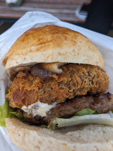 最初にバンズの小麦粉の風味とふんわりとした食感がきた後に、椎茸のプリプリした食感とパン粉の香ばしい焼き上げた香り、圧倒的な椎茸の香りが襲ってきます。