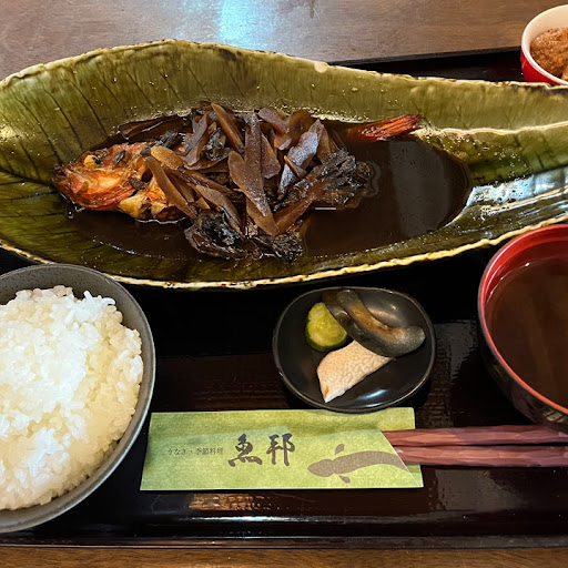 Read moreみたけエコラインへ走りに来て、事前に調べてランチは魚邦に決めてました。人気店だと分かってて昼の開店11時半に行くつもりが、30分遅れて着いたら駐車場がいっぱいで、平日なのに満席でした。独りなら入れてくれるかもと思い、店内で訊くと「待っていただきますが大丈夫ですよ♪」と言われ一安心。テーブル席で周りを見ると、うなぎを食べてる人や小鉢が並んだ料理を食べてる人ばかりでしたが、僕はネットで見て特撰キンキの煮付け定食...