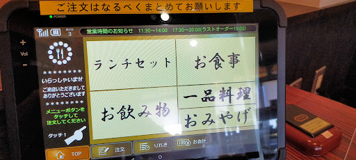 タブレットで1700円のうな丼を注文。ご飯の量が選べて、付け合せがしじみ汁、温うどん、冷うどんと選べます。アイスコーヒー)ウーロン茶とドリンクも数種類選べました。