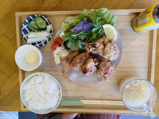 Read moreランチタイムはカフェ、ディナータイムは居酒屋のお店です。ランチタイムに伺いました。私はもつ煮定食、奥さんはキーマカレー、娘は唐揚げとメンチカツの定食を頼みました。サラダのドレッシングが三種類から選べます。ごはんの量も選べます(全員普通にしました)。