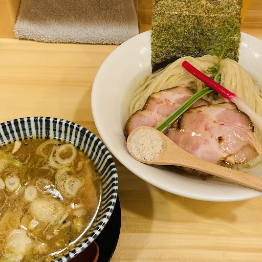 Read more店員さんの元気な声で迎えてもらえて元気が出て、食欲も湧き立ちます。紙エプロンが必要かどうか、優しい笑顔で聞かれて気配り上手なママさんがいらっしゃいました。 店内はカウンターが8席のみでした。 こんぶ水煮干しつけ麺 を注文。 藻塩と穂じそとレモンで食べる麺は、今まで食べたことがなく斬新で驚きな味でした。麺は中華麺を太くしたような見た目の麺でした。ツルッとしていて、歯応えのある喉越しのいい麺でした。 ここまでは、とても美味しく感動的でしたが、つけ汁が煮干しというか醤油強めな味で、驚きやパンチはありませんでした。 小麦多めのもっと太いザ・つけ麺の麺をイメージしていたので、自分の感覚との不一致があったので前もってもっとリサーチしてから行けば良かったと少し後悔しました。 しかし、あの麺でのラーメンはとても美味そうなので次はラーメンを注文してみたいと思います。 つけ麺は、思い描いていたものとは違いましたが、ラーメンに期待を込めて星4にしました。