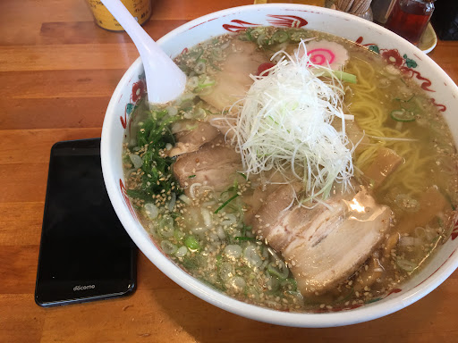 Read more水戸ではかなり有名な塩ラーメン。 塩チャーシュー大盛。820円大盛は150円。ウーン微妙ですが、美味い事は美味い。スープは熱い🥵器も熱い🥵一口目のスープは格別な旨味がある。アッサリ系と前評判だが、私には塩梅が辛いほうではなかろうか。途中から塩辛く感じる。洗面器の様などんぶりに細麺が泳いでいる。タップリのスープは満足できる。チャーシューは固めですが、私には食べ応えあり、星🌟🌟🌟🌟🌟なのだ。チャーシューはね。皆さんトロトロが良いと言いますが、食べ応え感は固めでしょ。いけないのは白胡麻が浮いている。歯に挟まる。味が変わってしまう。悪い方にですよ。それも擦り胡麻では無くそのままです。出来ればテーブルに置いてお好みで入れる方法がよろしいのではなかろうか。大盛にはご注意を。大食いの私でも満腹になる。写...