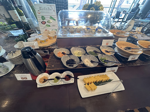 The breakfast at Hotel Terrace’s restaurant offers a fairly wide variety of options, combining traditional Japanese dishes with a few Western-style continental items. Guests can expect staples like rice, miso soup, grilled fish, and pickled vegetables, alongside bread, eggs, cereal, and coffee for those who prefer a more Western-style breakfast.
