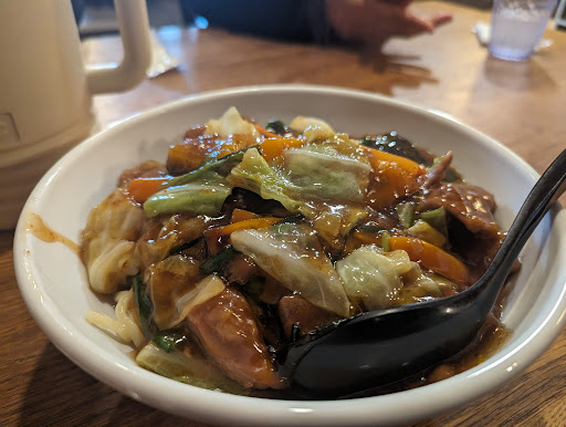 Read more2024.03.29 お昼に3人で訪問。スタミナ冷やしダブル1160円。友は、レバー増し+160円 雨が降っていたので、来店時は、運よくテーブル席に座れました。カウンター席と 座敷席があります。 食事中に、満席になってしまいした。人気店ですね。 ※一味と酢 を味変用に 使用するかを着丼時に聞いてくれます。 麺がもちもちで おいしい。餡もちょいカラでうまい。レバーもごろごろ入っており、カボチャも厚切りのごろごろ感とほくほく感を味わえます。 ◆個人的な見解ですが、スタミナ冷やし ダブル 多幸さんが、いまのところ私の1番人気です。安定したおいしさで、近くだったら頻繁に来店したい。 ランチ友達2人とも大満足でした。 ※壁に貼ってあって、写真ありませんが、麺5Kgの大食いチャレンジ6000円が挑戦料金で、20分以内に完食できたら、半額3000円になるとのこと。いまのところ挑戦者は、いないそうです。スタミナ5玉のお客さんは、いるそうです。 ごちそうさまでした。 無料駐車場があるので、遠方の方も時間...