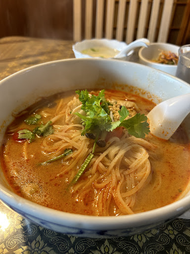 Read more初めて本場のタイ料理屋さんにお邪魔しました。店内は清潔感があり、中はそれほど広くはありませんが、テーブル席が7席くらいはありました。(2〜4名掛け)駐車場もお店の前に沢山あるので良かったです。ご夫婦でやられているようで、タイ語を聴きながら食事をするのはとても雰囲気があって良かったです。ご夫婦は穏やかでニコニコしてて、とても温かい気持ちになりました。ランチのトムヤムクンラーメンを頼みました。待ち時間も10分くらい。ラーメンの他に、スープとサラダ、デザートがついて1100円でした。辛さも丁度よく、とても美味しかったです。パクチーが苦手だったんですが、茎がシャキシャキしてて、残さず食べちゃいました。苦手を克服させて貰えて感激です!そして、大根と生姜とネギのスープはあっさりしてるのに旨みが詰まってて、いくらでも飲めちゃうお味でした!またお邪魔したいと思...