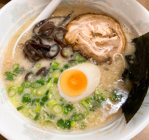 器から漂う強烈な豚骨臭 麺は弾力あるしこしこ麺 スープが麺によく絡むとか、麺に味が染みてるとかはないので麺はほぼ無味 ズズッと麺をすすったあとにスープを飲むと口の中で混ざってよい。 全体的に豚骨ラーメンにしてはあっさりサッパリとした味 あとに残るくどさもなく食べやすかった