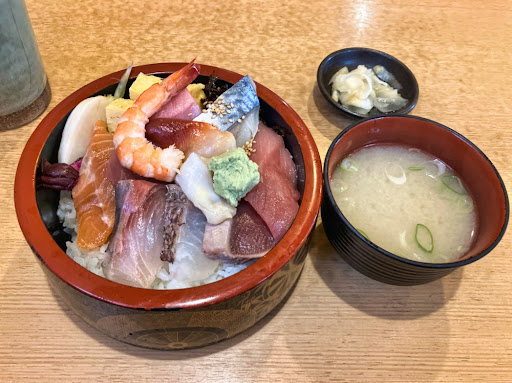 Read more朝からの用事が取引先の都合で延期になったので、取引先の近くのこのお店に開店時間と同時に入りました。 以前何回か来たことがあったのですが、久しぶりの来店です。 注文したのはランチメニューで1番お安い(1430円税込)の海鮮丼(10食限定)です。 海鮮丼は丼ではなく昔ながらのちらし寿司用の寿司桶で提供されています。 そのため丼に比べて酢飯の量が多めでうれしいです。 ネタに関しては写真の通りですが、マグロなども良いネタが使われていると思います。 今回も美味しくいただきました。 ランチには味噌汁(あら汁)とお漬物がついてきます。 写真のようにきれいな店内でお店の方の対応もよかったです。 ランチタイムはカウンターは使われずテーブル席だけのようですから、日によっては結構混み合ってくるかもしれません。 海鮮丼と握りはそれぞれ10色限定なので早めに入店する必要があると思います。 広い道路に面しているので入りやすいお店ですが、Google...