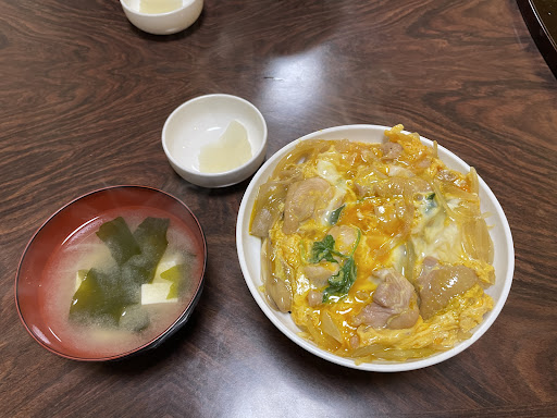 親子丼800円を注文。 満腹の大盛り親子丼と味噌汁、お漬物。 「多めに揚げておきました」とのことで心遣いありがたい。 鶏肉がぷりぷりして旨味たっぷり、かつ卵が美味しい。 玉ねぎもしなっとしすぎずシャキッとした食感が残りつつ甘みが出ていて美味しかった。