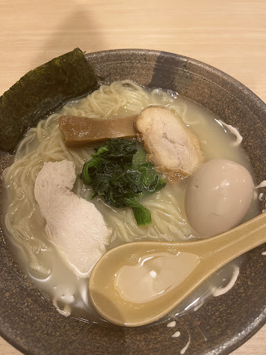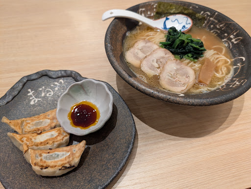当時はなかったかと思うが、ランチメニューができてたのでランチAセット(鶏白湯ラーメンと餃子のセット)を並で注文。1080円。 鶏白湯の味は好みで選べるが今回は醤油。 ツルッとひと息に完食できる美味しさ、スープまで美味しく頂いた。 餃子も焼きたてで美味しかった。