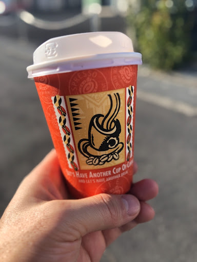 Read moreアイスコーヒーのテイクアウトの看板につられて入店(^^) テイクアウトのホットコーヒー100円,アイスコーヒーは200円(500cc)どちらも美味しいです♪レジ横にマドレーヌがあり2個購入(60円/個)これまた美味しい♪店内で飲むかテイクアウトか聞かれます。テイクアウトは,ご年配のおネイさんに頼みましょう(^^; ミルクとガムシロップは,入れるかも聞かれますよ! カップは,自販機の紙コップみたいなのに飲み口付きの蓋が付きます(アイスコーヒーは,ストローね)。アイスコーヒーは,美味しいんだけどハーブかなんか入っているのは気のせいかな〜誰か教えてくださ...