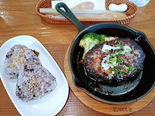 Read moreハンバーグとパンケーキが食べられるお店を探していてCoccaさんがヒットしました。 個人経営のお店は14時くらいに閉まってしまう所も多いなかCoccaさんは18時まで空いているので有り難いです(^^) お店の雰囲気も良く、接客されている店員さんも明るくて好印象でした! ハンバーグは『リピーター多数!』とメニューに書いてあった【とんてきソース】にしました。甘党のわたしの舌にクリティカルヒットの味わい✨これはやみつきです!!表面はカリッと、中は柔らかいハンバーグに甘いソースをたっぷりからめるとご飯がガンガンすすみます! パンケーキはシンプルに【メープルスタンダード】にしました。このてのパンケーキは出てくるまでに時間がかかると思っていたのですが、ハンバーグもパンケーキもさほど待たずに運ばれてきて驚きました。せっかちな私にはかなりポイント高し!でした💞 パンケーキは、スポンジケーキよりなフワッと系の軽い口当たりのパンケーキでメープル、生クリーム、アイスと一緒に食べても甘すぎずペロッと食べられました。 可愛いお店、雰囲気のよい店員さん、料理の提供スピードと味、駐車場の広さどれをとってもリ...