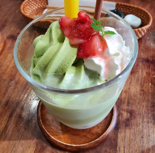 メニューは写真付だったり、文字だけだったり。 ガパオライスは品切れだったので、人気なのかな。 色々迷いましたが期間限定のハンバーグにドリンク、サラダセットにしました。スイーツに期間限定の春抹茶にしました。