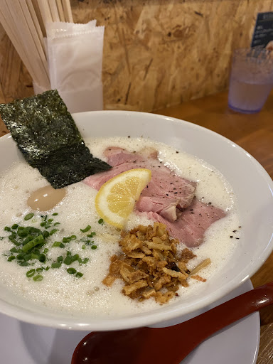 結果、とても美味しかったです。 スープの味がいい!!! 臭みなどなく、旨みが凝縮されてるような味!ラーメンも鶏白湯も詳しくないので、上手く言い表せないのが悔しいですが、美味しい!割とサラッとしたスープで口当たりは軽いです。 麺の硬さも丁度よかったです。 細麺のストレートでスープの味が絡んでいました。 量も成人女性には十分なくらい。 (一般的なラーメンと比べると少なめかも?) 最後の方は少し重くなってきたので、セルフのレモン酢を入れてさっぱりさせ、完食。 来てよかったです!