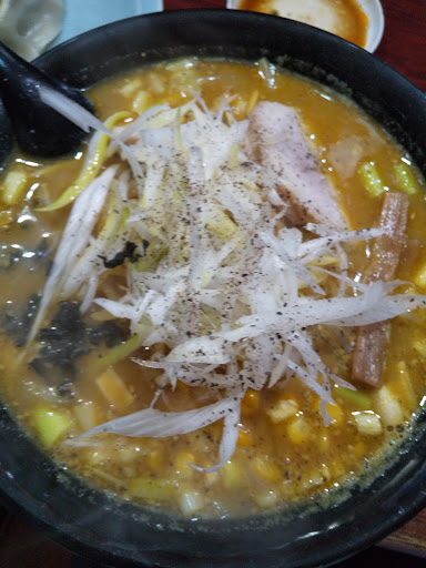 202211月某日 気に入ってるお店ですので、アレもこれも食べたい訳ですが、オッチャンの胃には容量制限が発生^ ^ 寒くなって来たし、ネギ味噌らーめんです。 ネギのシャキッと感、これ大事。 味噌のコクは北関東の民には必須。 要件満たしております。 麺は中太で、かみごたえがあり、う ま い ‼️ 小麦の風味感じますな。 半ライスと共に麺を啜り、野菜類の食感を楽しんで熱々な味噌スープを楽しむ。 日本人が開発した最高に美味い味噌らーめん。 堪らんな。 だが、尖ってるわけでも無く、地味にちゃんと仕事してるだけなので、いつでも食べたいですなぁ。 店主よ、今夜もご馳走様。