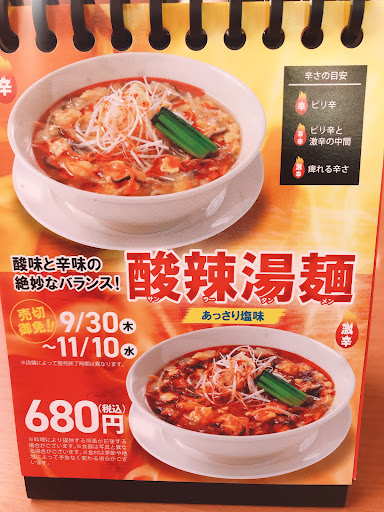 Read more酸辣湯麺激辛を前回見逃したので 今回は決め打ちでオーダーです 相方はいつもは塩なのに今日は味噌さんです お水を飲んで待っていると着丼 見た目辛そうな酸辣湯麺激辛ですものね 早る気持ちをおさえてパチリ まずはスープを一口 旨い^_^やっぱり頼んで正解でした 辛さも激辛と書いてあるけどちょうどいい感じ 酸味も私好みかな!ってか万人受けタイプですけどね!でも旨い あとは止まる事なく一気に食べ進め 汗もいい感じに書いて心も身体も満足してごちそうさま 相方も久しぶりの味噌野菜ラーメンを美味しそうに食べてましたよ♪ 餃子もいつものようにおいしかったですよ! ロボット...