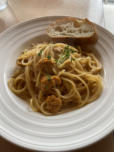 Read moreパスタランチ(ウニの和風クリーム)をいただきました。ランチセットで1298円、ウニは+275円。サラダに添えられたおからが意外にもクリーミーでとても美味しかったです。パスタは見た目こそシンプルで、ウニが5切れのみとやや寂しげですが、ソースはサラッとしていながらもしっかり濃厚な味わい。和風クリームというよりウニの旨味が引き立つ塩気のあるソースで、つい食が進みました。