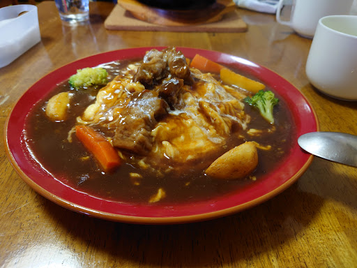 Read more悪いレビューが目立っていたので確認しに行きました。美味しいですよ。お値段は、スープ、サラダ、ドリンク、デザートがセットなので、高く見えるかもしれませんが、このセット内容考えれば高くありません。もともとお店は広くはないのとコロナの影響で席数はかなり少ない。そのためか、お子さんも注文お願いする張り紙あり。オムライスのお店だと小綺麗な店内をイメージすると思いますが、お世辞にも綺麗ではないです。限られたスペースに物を寄せている感じで煩雑としています。なので星4。店長しかいなかったので他の店員の対応はわかりませんが、いたって普通。ただ細かい要望の張り紙が目立つので少し気を使う...