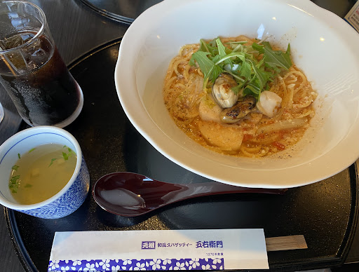 ããããšæ¹¯èãšã¢ããã¡ã¬ã©ããŒãºã®ã«ã«ãããŒã©Â¥1,150.-倧çÂ¥200.-ãã¹ãã·ã£ã«ã¹ã€ãŒãã»ããïŒã¢ã€ã¹ããªã¥ã¬ãã¢ã€ã¹ãã€ã€ã«ãã«ã¯ãã£ãŒãããŒãïŒÂ¥500.-ãé ããŸããã麺ã¯ãã£ãããšã³ã·ããã£ãŠçŸå³ã§ãïŒããããšããŒãºãšããçµã¿åããã¯ãã£ã±ã匷ãã§ããããçŸå³ãããŠãã»ãŒã€ããå°ãã§ãããäžç·ã«åºãŠãããµã©ããçŸå³ã§ããïŒå€§æ ¹ãµã©ããªãã§ããã©ããã¬ãã·ã³ã°ãã¡ãã£ãšå€ãã«ããã£ãŠããŠèªå奜ã¿ã§ããããžãã¡ãŒã¹ããšãããšãã§ã麺ããå ã«é ããŠããŸããŸãããã¹ãã·ã£ã«ã¹ã€ãŒãã»ããããåŸã ãšæã£ãã®ã§ãä»ãã¡ãããŸããããã¶ãŒãã¯å šéšçŸå³ããããªã®ã§3çš®ããéžã¶ã®ãè¿·ããŸãããã©ã¢ã€ã¹ããªã¥ã¬ã«ããŠçŸå³ããé ããŸãããã¢ã€ã¹ãã€ã€ã«ãã«ã¯ãã£ãŒãããŒãã¯ããèããã°èªåäžäººã§ããã«ã¯ãã£ãŒãšã¢ã€ã¹ãè²·ã£ãŠããã°åºæ¥ãããªçµã¿åããã§ããã©ãä»ãŸã§ã®äººçã§ãã£ãŠããªãã£ãã®ã§ãã¡ãã£ãšæ°é®®ã§ãããããå³ã¯ã»ãŒäºæ³éãã§ãããã©ãã¢ã€ã¹ããªã¥ã¬ãšäžç·é ããªããã»ã£ããããŸãããåºå ã¯éãã«ãžã£ãºãæµããŠãŠãèœã¡çããé°å²æ°ã§ããåéã¿ããªã§ã¯ã€ã¯ã€é£ã¹ã«æ¥ãŠãè¯ãã§ããããã©ãå人çã«ã¯é°å²æ°ãããŒãã§é£äºãããã®ã«åã£ãŠããšæãã®ã§ã圌æ°åœŒå¥³ãšäžç·ã«å€é£ãé£ã¹ãæã«è¡ãã®ãè¯ãããªãšæããŸãããåžã¯ããã¯ã¹ããããŸããã©ãäžäººãããœãã¡ã®åžããããŸããäžäººã§é£ã¹ã«æ¥ãŠããŸã£ã...