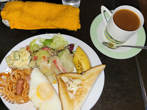 The best "morning set" I had in Japan. Sunny side-up egg with ham, toast and...