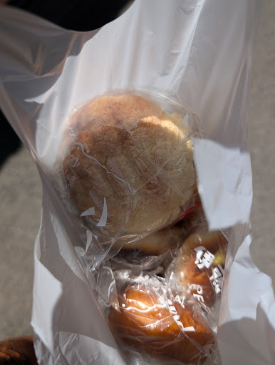 Read moreタウン誌で気になるお店だったので訪ねてみました。よく見てないと素通りしそうな佇まいのお店でした。中に入ると80代くらいのおばあちゃんが出てこられました。菓子パンが7種類あり全部一つずつ買ってみました。どれも昔ながらの素朴なパンでしたが、あんパンは甘さのなかにわりと塩気を感じるものでした。 揚げパンが人気らしいのですが、この日はなかったのでまた機会があればお...