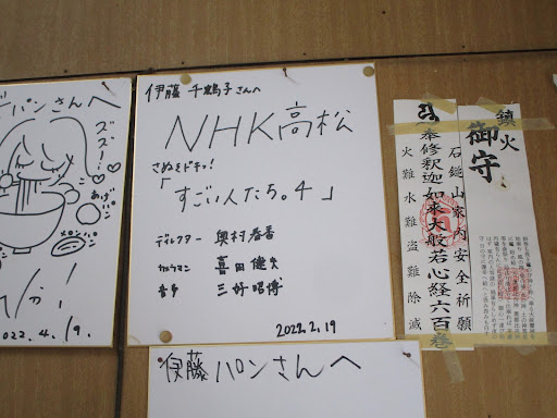 ~ 伊藤製パン所 ~ 1948年(昭和23年)創業 仁尾町の細い細い路地を入った所にある … パン屋さん 地元 … 仁尾では「イトパン」と呼ばれ … 皆に親しまれている伊藤製パン所 建物は … ガラガラ戸 「こんにちわ~」と中に入ると … 可愛いおばあちゃんがニコニコ笑顔で迎えてくれた 伊藤千鶴子さん 82才 ショーウインドーの中には … 手作りで作られたパンが美味しそうに並んでいた 「あげパン(120円)」 「2個下さい」 250円支払って … 10円のおつりをもらった パンは … 紙袋に入れられ … 両端がクルクルと結ばれた たくさん飾られた … 色紙や新聞記事・お礼のお手紙… 等 壁に所狭しと掲示されている 「この前…国分太一さんと一緒に写真撮ったんでぇ」 色紙の所まで案内 おばばあちゃんの「パン作り一代記」がスタートした ・ 昔は…地域の幼稚園や保育所の給食用のパンとして作っていた ・ 毎朝4時30分頃に起きて…生地をこねている ・ 中に入っているあんには「そら豆」や「かぼちゃ」「サツマイモ」入れている ・ 1日大体100個作っている ・ 以前は…みんなで作ってたけど…今は私一人で頑張ってる ・ 「ここのパンがええ」と通ってくれる人がいる限り…頑張るわ … 等々 わたしは…「ほ~なぁ」「頑張ったなぁ」「大変やったなぁ」等々…会話に応じて…返事だけ… 嬉しそうに話をしてくれるおばあちゃんの声に耳を傾け「聞くこと」に全力を尽くす 30分くらい話したかな? 店前に止めていた私の車があって…通れない…と宅配のドライバーさんが店内の私を呼んだ 「申し訳ないで~す」 「おばあちゃん…いつまでも…元気でがんばってなあ」 紙袋を助手席に置き…車を走らせた 自宅に戻り…熱い緑茶を入れて…両親と一緒に食べた 頑張ってる「おばあちゃん」が話の中心 モチモチとした外側の食感 と 中のあんの自然な甘さがちょうどいい 緑茶との相性...