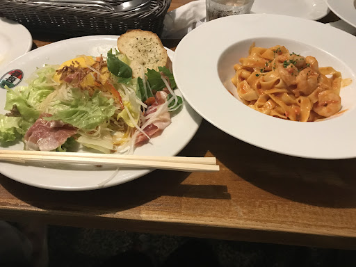 The restaurant was fashionable,very well air-conditioned (maybe too cold for me..), we enjoyed delicious salada, pasta, pizza all together. :)