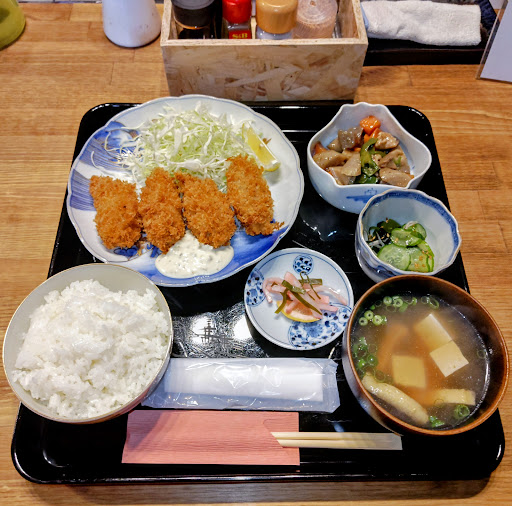 Read moreお昼は❗三豊市 仁尾町 仁尾丁 の 定食&酒場「とうかいや」で「カキフライ定食」🍴 此方は❗2023年6月にオープンした老舗水産加工業者「藤田水産」の営むお店で 水産加工業者だけに食材の目利きは しっかりとしてるって評判なお店です😏 本当は❗「さわら塩麹焼き定食」が食べたかったンだけど、丁度 品切れだったンよなぁ~😥 冷凍ながら熱々ジューシーなカキフライが4つも並ンで 嬉しいよねぇ~😆 和ティスト溢れる小鉢は❗「筑前煮」と「酢の物」で これまたイケてるぅ~😋 優しい味わいの味噌汁も良いやねぇ~😃 定食メニューの種類も本当に豊富なンで...