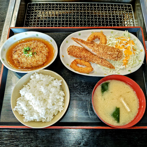 詫間にある美味しくて、とてもお得な焼肉屋さんです。 週末のランチで訪問しました。 お店の開店時間11時半に伺ったのですが、既に4組、計9名の方が待っています。 開くとともに店内へ入ります。 お店の方が笑顔で注文を取りに来てくださります。土日ランチメニューから注文をします。カルビランチごはん中盛を注文しました。店員さんがコンロに火をつけてくださります。 5分ほどで到着しました。内容は和牛のカルビが6枚、キャベツ、みそ汁、ご飯です。 和牛カルビを、網において焼きます、30秒ほどで焼き上がります。網にサシが入っていて、めちゃめちゃおいしいです。そしてごはんが進みます。タレもおいしいです。 ぱくぱく食べ進みさっと食べきりました。これで1000円を切るとはとてもお得ですね! 周りの方を見ていると網で焼かずに楽しまれている方も多く、ハンバーグランチもお安くて、大きくてボリューム満点のようです。 また、牛丼440円を頼まれている方もいたのですが、これもボリュームありそうでした。 さらに、ハラミステーキ定食は、焼いて持ってきてくださっていてこれも美味しそうでした。 近くでファミリーセットでしょうか? お皿にお肉をたくさん乗せて食べられている方もいたのですが、これもお得感がありました。...