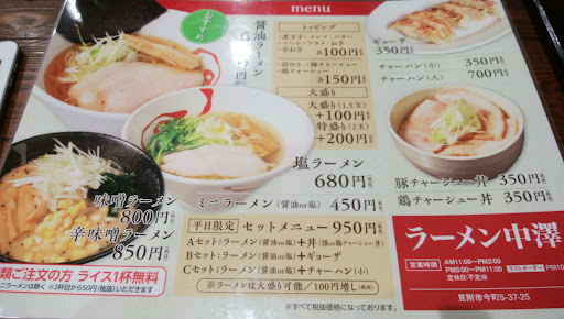 Read more美味い😋見附市の中では上位を占めるお店だと思います。あくまでも私見ですが、飽きない。こじんまりとしたお店だが、味は申し分ない。よく行きます。リピーターです。座敷もあってファミリーには使えるお店。ただ、愛想振りまくような方ではない。無愛想。リピーターが故に毎回残念に思う。美味しいのに。残念です。 そして、何より国道に面しているのに駐車場が少ない。会社帰りに同僚といくとそれだけで埋まる。どこか心苦しく、ゆっくり出来ない。駐車場増やして欲しい。美味しいものをゆっくり食べたい。お願いします。あくまでも...