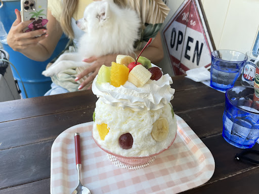 Read moreお天気も良く最高のロケーションで食べることができました! テラス席でならワンちゃんも一緒に食べられます!ワンちゃん用に冷たいお水を出してくれて優しいお店です🌷 味の方も抜群!フルーツは1番美味しく熟していてシロクマの練乳シロップもめちゃくちゃに美味しい! シロクマアラモードとパインヨーグルトシロクマを注文しました。 鹿児島出身ですが、正直鹿児島で食べたシロクマより美味しいです!でもシロップが地元と同じ味で懐かしくもあり、また食べたくなる味でした! 絶対にまた行きます!もっと暑くなってからでも良いかも! 車だと楽に行けるけど、電車とバスでも行く価値あり!