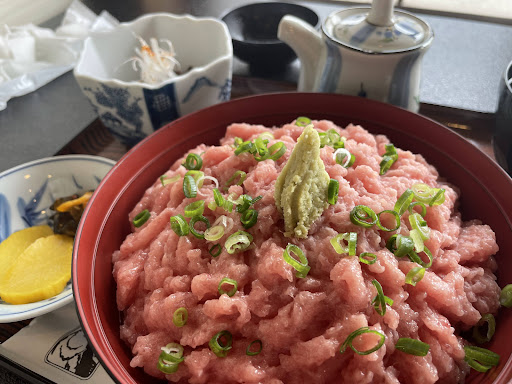 Read more三崎港に何回か訪れたことがあるのですが、表通りに面している古くて優雅な建物がいつも気になっていて、いつかは入ってみようと思っていました。||老舗なので、予約なしはお断り!みたいな感じかなぁと思いながらやや緊張気味に入っていくと、普通に「お食事ですか?どうぞ。」と、あっさり通されてちょっと安心。なんせ、夏になるといつもアロハ、半ズボン、サンダルといった格好で歩いているため、怪訝そうにされることも少なくなくないので。||ちょっと奥まった日本間に、テーブルと椅子がいくつか並べてあるという和洋折衷でしたが、内装は実に古き良き日本を感じさせるいい雰囲気です。||メニューはコース料理がメインで、いくつか一品料理も追加できます。ランチは¥2500から。これは重箱に4種類のマグロ料理が入っているお弁当風。男性にはちょっと少ないかも。でも、ご飯はお櫃で出てきますので、お代わりできます。||そのほかのコースは懐石料理で、一品一品個別に出てきます。一つ一つが、歴史を感じさせる懐かしい味付け。マグロのステーキや角煮などのちょっと懐かしいトロ~リとした甘めのタレなぞは、それだけでご飯三杯くらいいけちゃいます。かくいう私も、デブを気にして炭水化物は控えているのですが、思わずご飯をお代わりしちゃいました。||竹コースというのを頼みましたが、おかずは全部で九品。ご飯もたらふく食べて、イヤァ満足満足。お昼にしちゃぁ贅沢しすぎですなぁ。||今回は車を運転していったので、アルコールを飲めずに、ちょっと物足りなかったかも。宿泊もできる上、予約すると元祖マグロの兜焼きを注文できるので、ぜひぜひ友人や家族と宿泊して大...