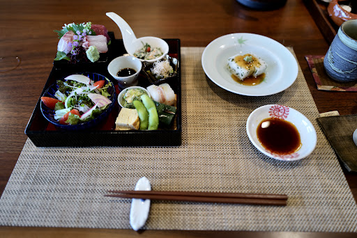 Read more6/11/2024 三浦半島の南端、毘沙門に住む知り合いに教えられ、予約を取って出かけた。海岸駅から海に出た交差点を金田湾の方角に右折すると店に着く。 対岸に房総半島が横たわって、美しい東京湾が見渡せる。昼は3500円のセットメニュー。 前菜にあたる「一の膳」はお造りと八寸盛り。アサリと九条ネギのヌタ、麩饅頭の柏餅風、アカモクのヨセなど多彩で楽しめる。これだけ出されると、実に常温の日本酒が欲しくなるが、残念ながら当方は本日運転手だ。 メインにあたる「二の膳」は焼き物、煮物、揚げ物、肉料理から2品を選ぶ。当方は「エビの磯辺揚げ」と「豪州牛のローストビーフ・サラダ」を注文。そして「三の膳」は枝豆入りの五穀米と味噌汁。さらにデザート、コーヒーも付いた。 総じて、何れも凝った割烹料理に大変満足した。 ただ次回ここにくることがあれば、電車、タクシー利用で酒...