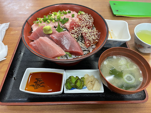まず肝心な料理。観光地のわりに価格は良心的です。大盛りでもちょうど良いかなという丼もののご飯量です。 酢飯ですので苦手な方は注意。 個人的には鮪の油と相まって非常に美味しく感じました。 提供時間は6〜7分ほど。清潔感がある食器類なのは嬉しかったですね。 飲み物は温かいお茶を急須ごと置いてくれたのでおかわりの気を遣うこともなく楽しめました。 しかも席につくなり温かいお茶を出してくれたので冷えた体には沁み入りました。 気にされる方もいるかと思いますので書いておきますが、低評価の他の方も書かれていますが店員さんがものすごいパワフルですw都会の接客に慣れている方だと正直面食らうかもしれませんね。良い意味でも悪い意味でも昭和感バリバリな感じですが個人的には人懐っこい接客は嬉しいものです。 芸能人で誰々が来たとかのお話は私が正直あまり興味がないのでどうでも良かったですが、昔の城ヶ島の話などを聞いたらすごく細かく教えてくれました。 旅の楽しみは全て受け入れて体験することだと個人的には考えています。 スタッフさんの態度で腹を立てるのもヒトとして正常な反応ですし私もそういうことがありますが、せっかく三浦半島の先端まで出かけたのであればそれも思い出として楽しんでしまった方が良い記憶として覚えていることができるかなと思います。 悪態をついてくるわけではなくぶっきらぼうという感じかな?悪い方ではないですよ。 帰りには自家製の塩辛をお土産に買い込み後にしました。また城ヶ島で釣りの時はこちらで...