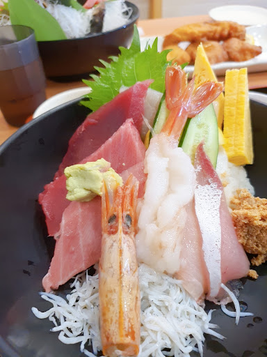 Came here with the Maguro ticket. Seats move super quick, as the chefs are also super quick with the order - it didn't even take 5 minutes wto come out with a dish! The seafood bowls were great but the stars were the 'Torotoro ni' stewed tuna and the fried tuna for 700yen each. The stewed tuna was soft and fatty like it were pork and the fried tuna was succulent. Never enjoyed tuna more. Worth coming if you are in the area or if you want to try delicious tuna cooked...