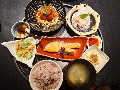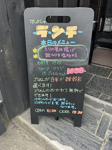 Read more平日ランチに伺いました。開店が11時30分とのことでしたので、早めに行ったつもりでしたが開店5分後に到着したところ、すでに満席でしばらく待つことに。 席に案内されると半個室で落ち着く良い雰囲気。 お昼時は日替わり定食(税込1000円)のみで、席に案内されると白米が雑穀米かを聞いてくれます。 しばらくすると日替わり定食がお盆に載って運ばれてきましたが、大きめのお盆に載りきらないほどの品数です。 鳥の竜田揚げと鮭の塩焼き、お造りにお豆腐、デザートご飯汁物と色々食べられて大満足です。 ランチ限定ののスタンプカードもあって、10回食べると1回無料になるそうです。 子供連れでも行きやすい...