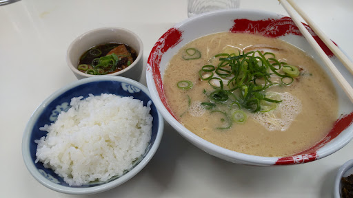 Read more佐賀ナンバーの車が多いので、地元の方に人気のお店だと思います。ランチ時に伺いましが、次から次にお客さんが来てほぼ満席。車はお店の前と横に15台程駐められます。券売機で食券を買う方式で現金のみです。GW中に煮卵ラーメンを頂きましたが、昔の博多ラーメンの様にコッテリしたコクのあるスープですが、博多の屋台ラーメンや丸幸ラーメンセンターの様な豚骨臭ささが無いため飲みやすく、私にはストライクなラーメンでした。チャーシューは薄いけど一切れが大きく味もそれなりに染みた柔らかいチャーシューで美味しかったです。辛子高菜(辛さ強め)・下ろしニンニク・紅生姜・ゴマも無料で入れれます。ただ、麺がバリカタで注文しても普通の硬さだったのと煮卵の白身部分は殆ど味が染みておらず普通のゆで卵くらいだったので星一つマイナスです。全体的にはまた食べたいと思えるラーメンです。近くの大久ラーメンさんも値上げしたようですし、今のご時世、どこのお店もラーメン一杯が¥600以上するので¥550で食べれる貴重なお店です。是非これ以上値上げせずこの味を保って頑張って欲しいです。あとトッピングのモヤシやキクラゲなど煮卵とは別々(現状それらをトッピングする場合には煮卵との抱き合わせ方式なので割高になるため)にトッピング出来る様にして欲しいのとPayPayくらいは導入し...