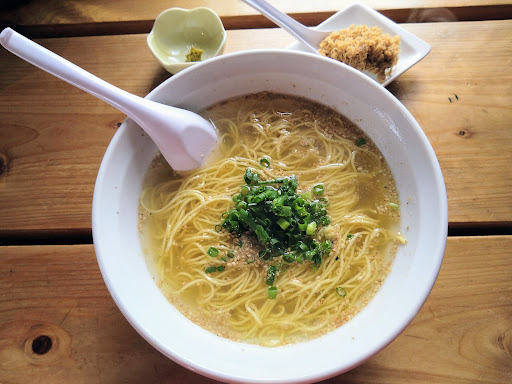愛媛や徳島で食べた鯛出汁のラーメンはこれ鯛なの?って感じだったりしましたが、こちらは普通に鯛らしい味わい 細めのストレート麺と青ネギ、白ゴマのみというシンプルな構成で直球勝負ですが 別皿で甘く炊かれた鯛のほぐし身と柚子こしょうがついてきます これはこれで美味しい一杯でした