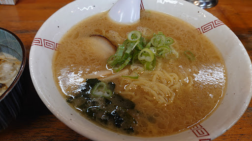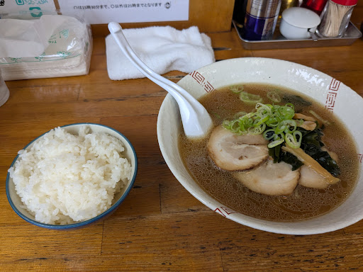 日曜日の11時30分頃の訪問。本当は近隣の店舗に行きたかったんですが待ちがあったのでパスしてその隣もスルーしてしまい、流れでこちらへ。駐車場は店舗裏側に5台程度駐車可能。カウンター6席と2人掛けテーブル2席程度の小さめなお店。今回はチャーシュー麺¥950にライス¥150をオーダー。提供まではめちゃくちゃ早く数分で到着。味の方はというとごくごく普通の中華そばで麺も市販されているような感じの麺。スープはいまいちベースが何かが分かりませんでしたが、まあありきたりの醤油ラーメン。チャーシューもそれほど特徴無し。それより何より店内が暑すぎ。エアコンはかけているようですが全く冷えてません。それとカウンターの端に座りましたがテーブルの清掃が行き届いておらず角に蜘蛛の巣が。メニュー表もカウンターの上の方に書いてあるのみで、席によっては物凄く見づらい。この味、この環境では同じ道路沿いに3店舗ほどラーメン屋さんがあるので選...