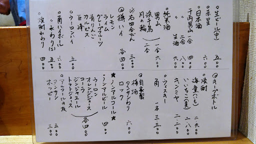 Read more宮古を訪れた際、夜に伺い、宮古の地酒『男山』と『寿司セット\3,000(消費税込)』を注文しました。まずは『ホヤとめかぶの酢の物』を出して頂きました。『新鮮なホヤは美味しい』と大将が仰るとおりです。三陸のめかぶとの相性も抜群です。次にナメタガレイの煮付けが出てきて、優しい味付けにますます『男山』も進みます。揚げ物の音がすると思っていたら、女将さんが天ぷらを揚げておられました。揚げたては、本当に美味しいですね。お酒が順調に進み、もう一合追加しました。いよいよクライマックス…『岩手の寿司を味わって行って下さい』とお寿司を頂くことになりました。一握り、一握り丁寧な手さばきをカウンター席から拝見しておりましたので、その味も期待通りでした。中でもトロ、ホタテ、ソイが特別に美味しかったです。 柔らかなお人柄の大将と女将さん。旅の話等をしながら温かい空間を満喫出来ました。私の食べるスピードを見計らいながら、お料理を提供して下さるのもさすがプロだなと感じます。常連さんが多いというのも頷けました。お店の暖簾は『居酒屋』とありますが、お通し、チャージもなく、しめて\3,800 ...