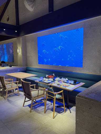 ブルーのライトがとてもきれいで、雰囲気が大好きです。海中の映像モニターも素敵でした。
