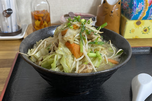 '250405訪問 野菜そば 850円 野菜たっぷり 野菜6:麺4の分量 豚肉も入っているので飽きずに食べられた スープも出汁強目なので味変前後両方味わえて良かった お腹一杯で満足
