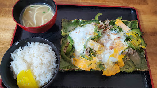 '250309訪問 ゴーヤチャンプルー定食 900円 肉と豆腐が適度に入っているのも良いがなによりも玉子綴じと言って良いほど玉子がたくさんなのが良かった 量も十分 ただ量の割に皿が小さく少し食べにくかったかも 付け合わせのミニそばも動物系の甘めの出汁が効いて美味しかった