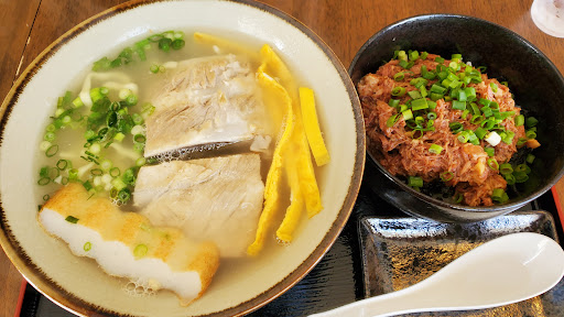 Read more'250312訪問 とんこつだし本ソーキそば(中)+ソーキ飯 950+300円 とんこつだしは豚骨ラーメンのスープを薄めた感じで物足りず ソーキの煮込汁をそのまま使ってる感じ ソーキは大きく肉質も良いが味が薄め それに反してソーキ飯は濃い目の味付けで肉たっぷり食べ応えがあって美味しかった