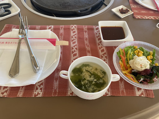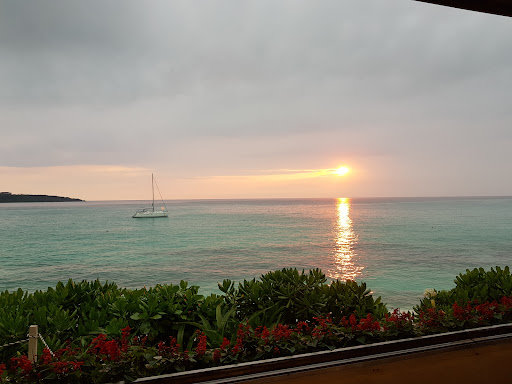 東急リゾートホテルの中にあるバーベキューレストランです。テラス席が人気で、予約が取れず中にしましたが、中の席もピクチャービューになってて十分景色が楽しめました。コロナの影響で閉店時間が8時のため、6時ごろからご飯はスタート。その時間は宮古島はまだ日が高く外の席の方達はパラソルに隠れて日差しが大変そうでした。中の方が案外よいかも知れません。眺めは本当に抜群です。